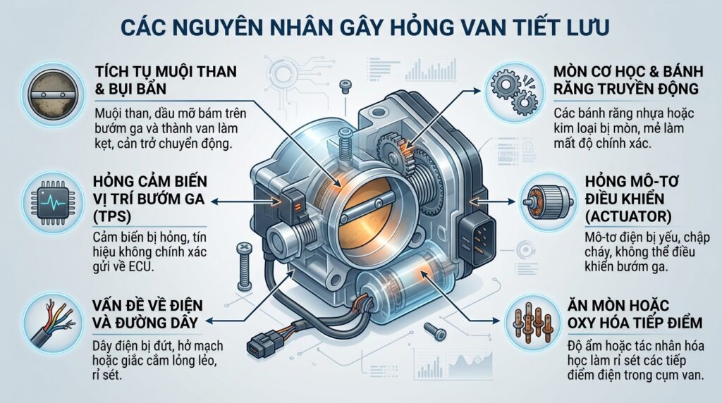 Nguyên nhân khiến van tiết lưu bị lỗi