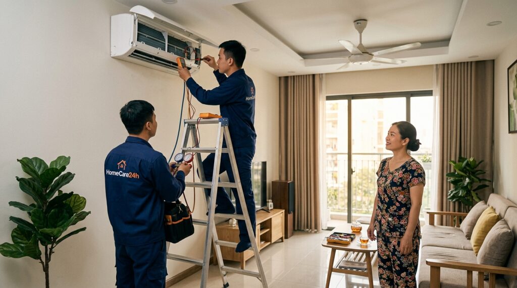 Bạn không cần phải mang điều hòa đi sửa, vì dịch vụ sửa chữa tại nhà sẽ giúp bạn tiết kiệm công sức và thời gian.