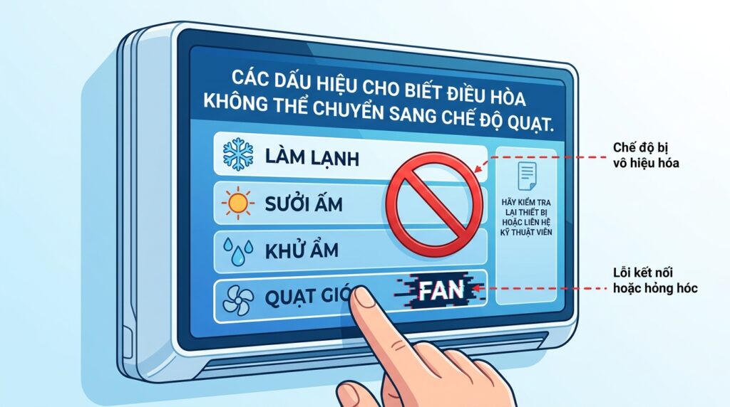 3. Dấu hiệu nhận biết điều hòa không thể bật chế độ quạt