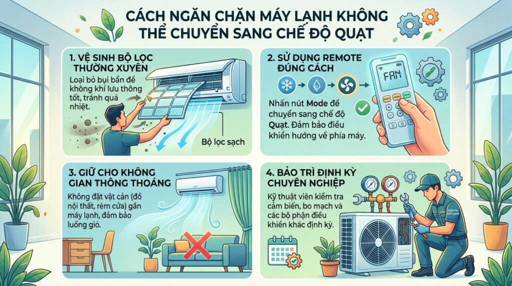 5. Làm thế nào để ngăn ngừa tình trạng điều hòa không thể bật chế độ quạt?