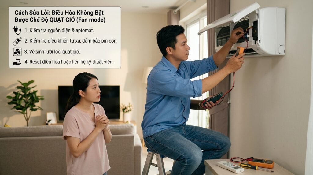 4. Cách khắc phục khi điều hòa không thể bật chế độ quạt