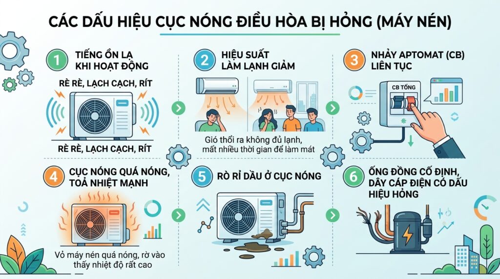 Làm sao để biết máy nén điều hòa của bạn đang gặp vấn đề? Dưới đây là một số dấu hiệu phổ biến:
