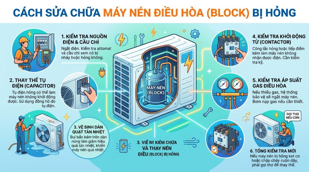 4. Cách khắc phục khi máy nén điều hòa bị hỏng