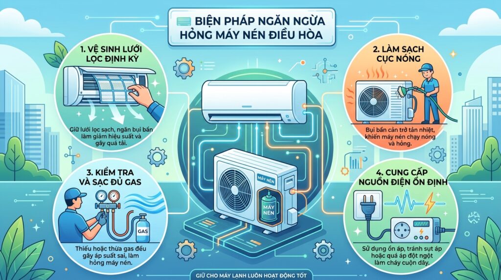5. Làm thế nào để ngăn ngừa máy nén điều hòa bị hỏng?