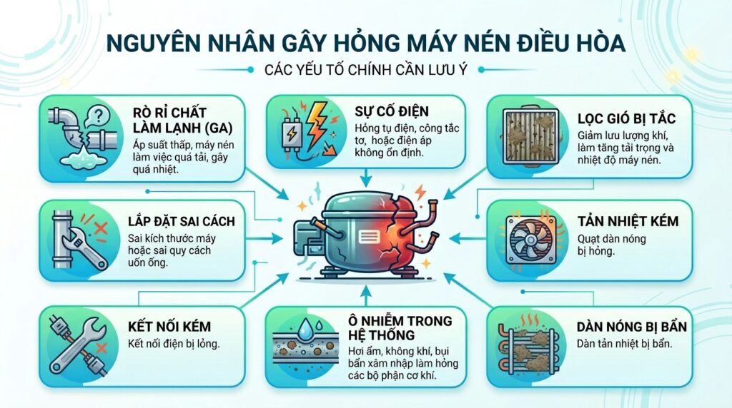 2. Nguyên nhân khiến máy nén điều hòa bị hỏng