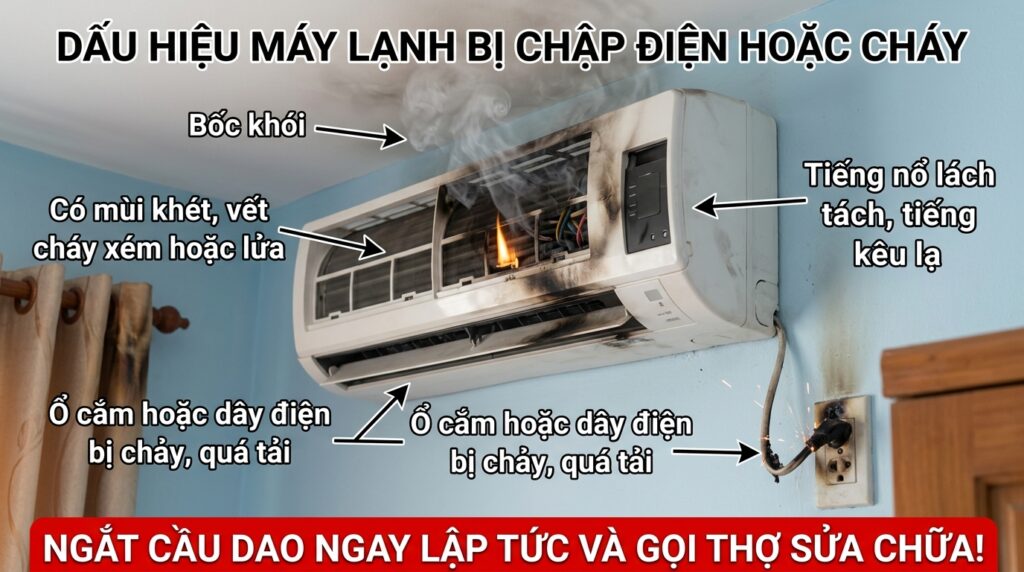 3. Dấu hiệu nhận biết điều hòa bị chập cháy