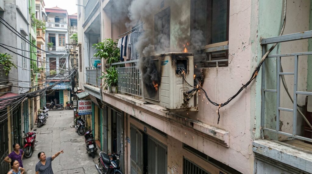Việc lắp đặt điều hòa không đúng cách, sử dụng dây điện kém chất lượng hoặc không tuân thủ các tiêu chuẩn an toàn có thể làm tăng nguy cơ xảy ra sự cố chập cháy.