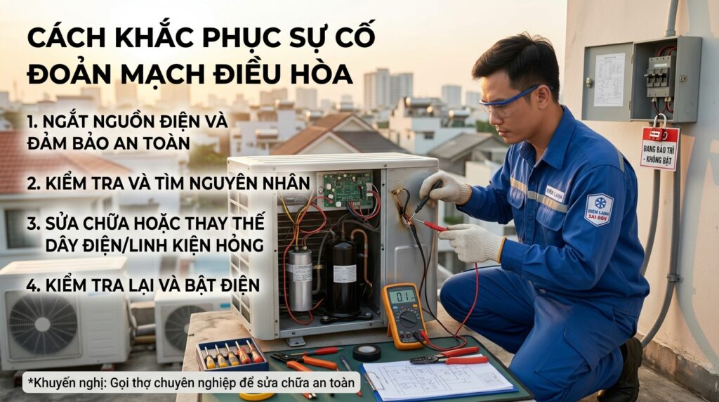 Để đảm bảo an toàn và khắc phục triệt để sự cố, bạn nên liên hệ với dịch vụ sửa chữa điều hòa chuyên nghiệp. Các kỹ thuật viên sẽ kiểm tra, xác định nguyên nhân và đưa ra giải pháp sửa chữa phù hợp.